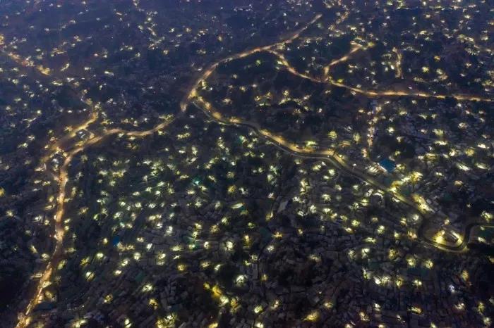 該難民營名為Cox’s Bazar,位于緬甸/孟加拉國邊境,居住著超過一百萬的難民。這幅令人難以置信的夜間無人機(jī)拍攝作品展示了臨時營地是如何發(fā)展成為一個小城市的。